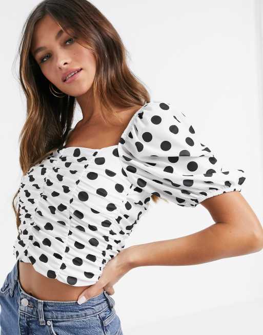 Top fruncido con manga abullonada y lunares de ASOS DESIGN Very well made.