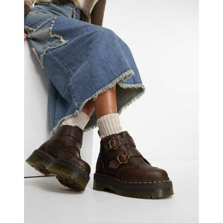 Dr Martens Devon flower quad boots in dark brown grizzly leather Very well made.