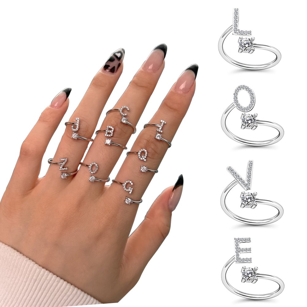 Simple Rhinestone 26 Letter Rings For Women Sliver Color Initials Very well made.