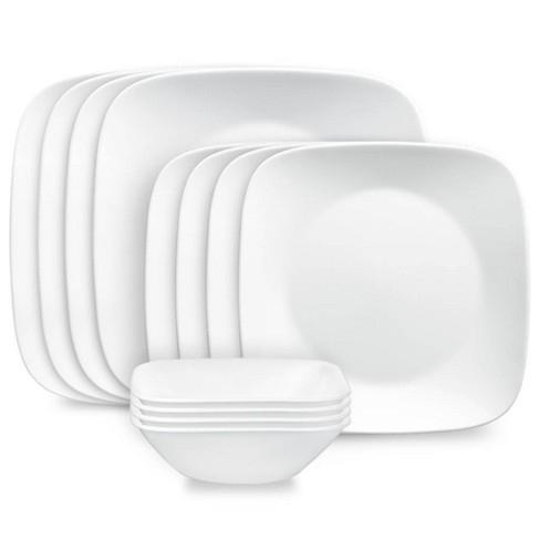 Corelle 12pc Vitrelle Pure White Dinnerware Set Service for 4 Includes Plates Bowls Solid Pattern Dishwasher Safe Very well made.