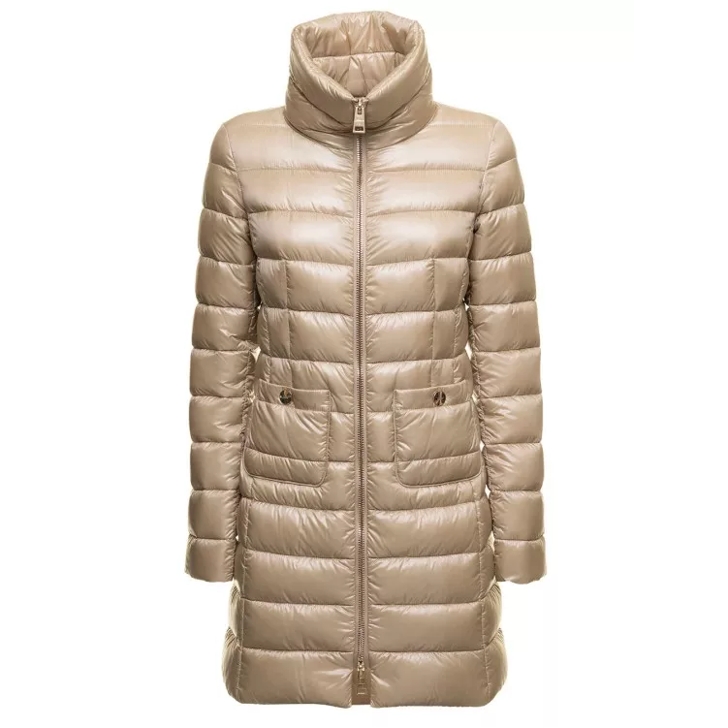 Herno Maria Beige Quilted Nylon Long Down Jacket Neutrals Vestes Very well made.