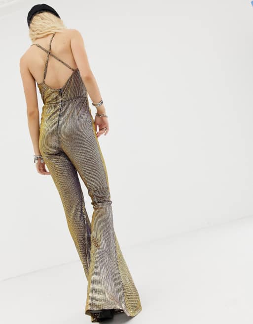 Elsie Fred gold glitter flared jumpsuit Very well made.