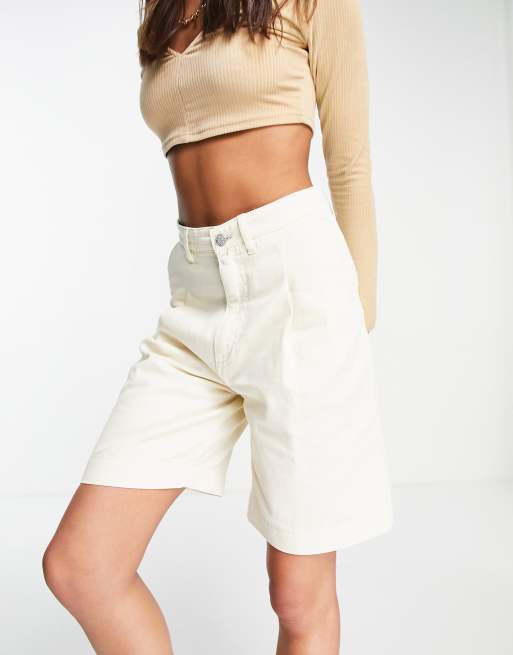 Monki high waist longline denim shorts in ecru Very well made.