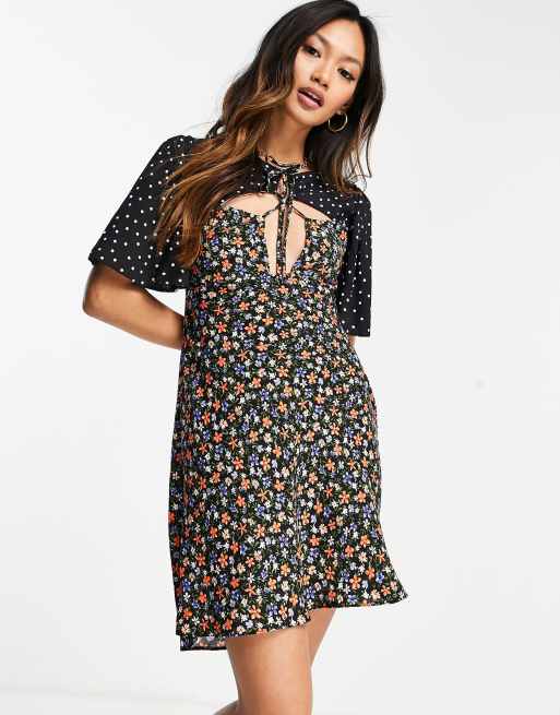 ASOS DESIGN button detail triangle cut out mini tea dress in white base multi floral print ASOS WHITE BASED FLORAL US 12 ShopoTam ASOS Very well made.