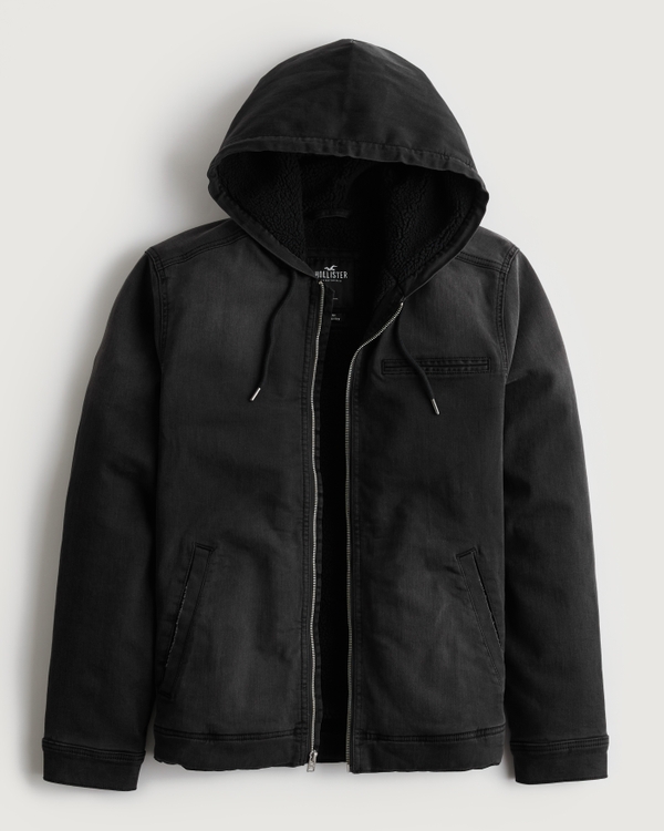 Men s Faux Shearling Lined Hooded Twill Jacket Men s Clearance Very well made.