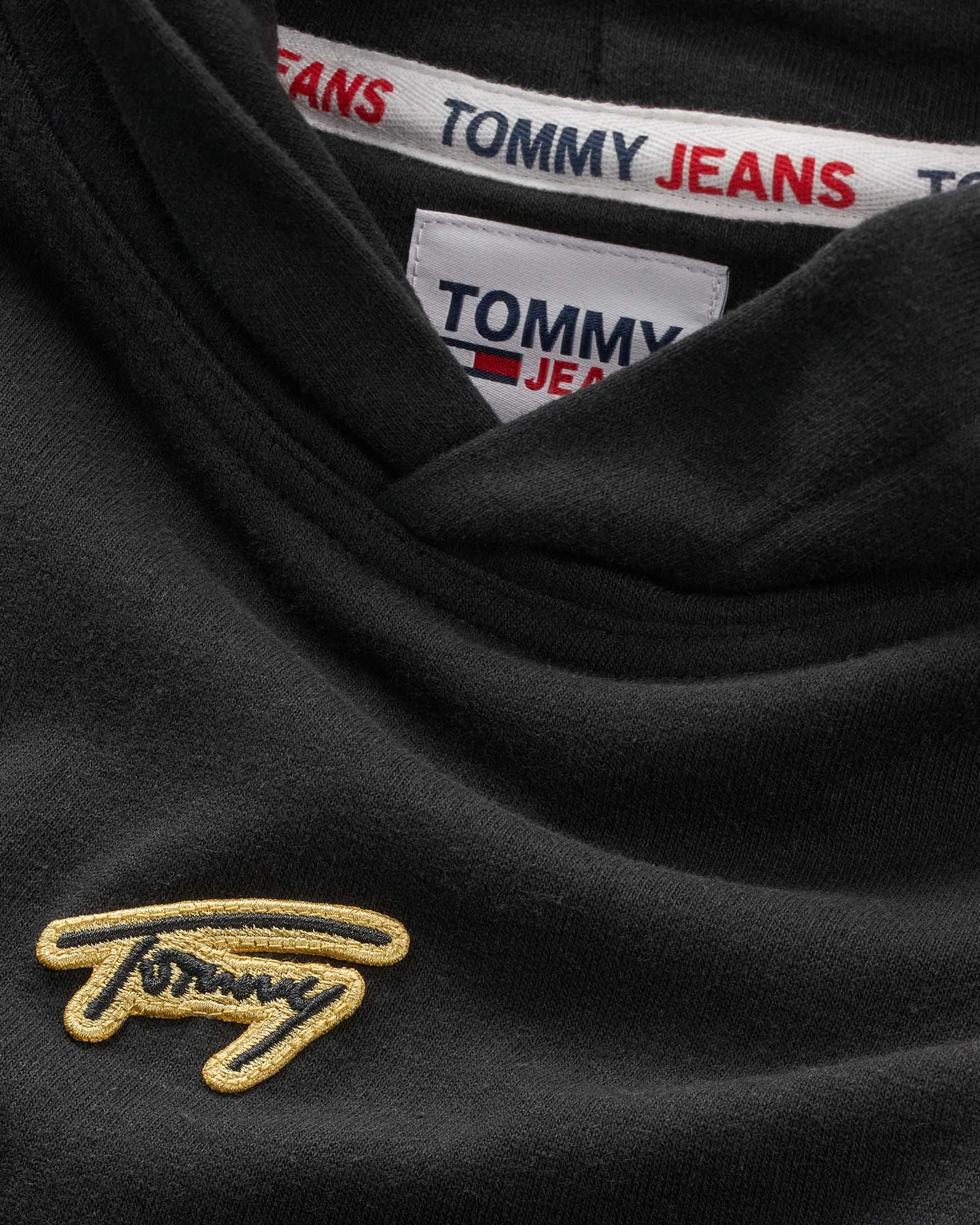 Felpa nera con cappuccio e logo firma dorato ricamato sul petto Very well made.