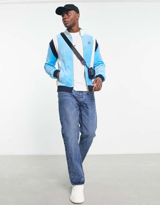 Fila velour zip through track top with logo in blue Very well made.
