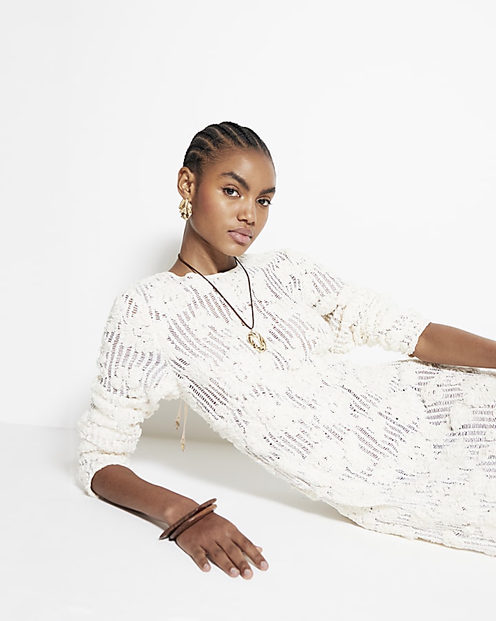 Cream Floral Lace Long Sleeved Maxi Dress River Island Very well made.