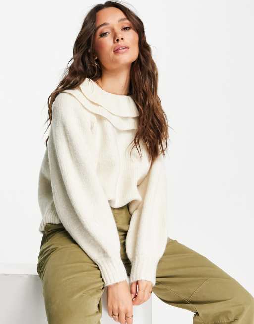Selected Femme knitted jumper with frill collar detail in cream Very well made.