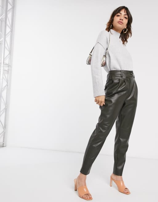 Fake Leather Trousers In Khaki With Pleats Liquorish SilkFred US Very well made.