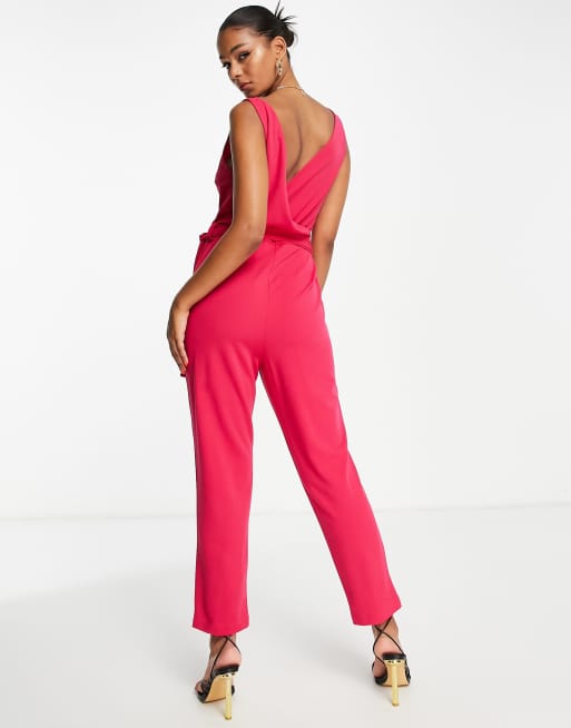 Girl In Mind Jumpsuit met rechte pijpen en overslag aan de voorkant in fuchsia ASOS Very well made.