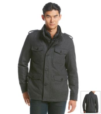 Guess Coats Wool Blend Military Coat With Removable Puffer Bib in Very well made.