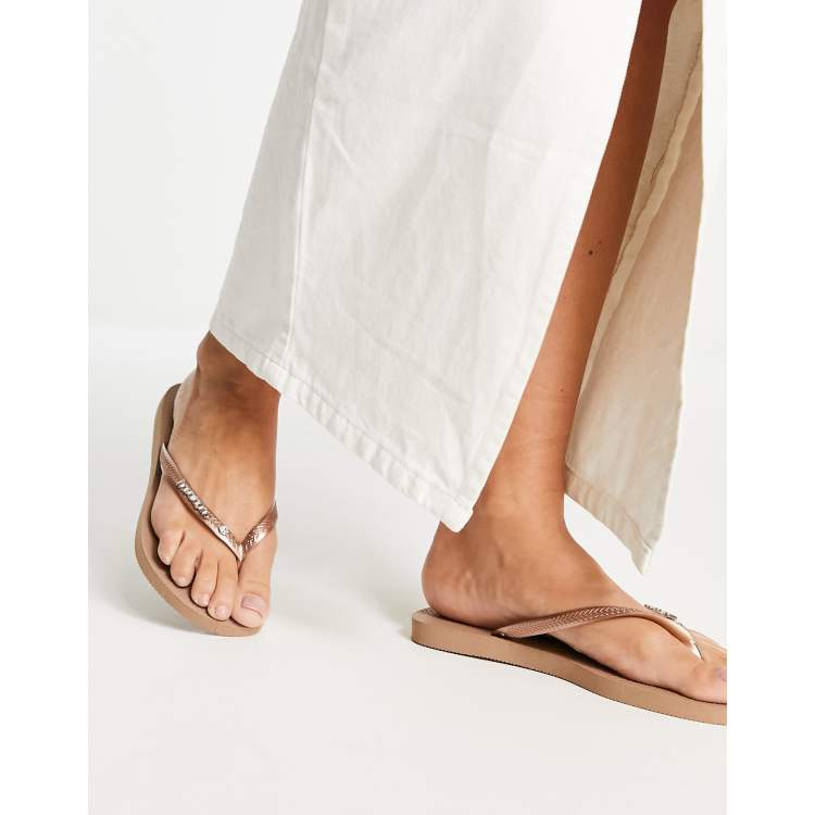 Havaianas Slim flip flops with metal logo and crystal in rose gold Very well made.