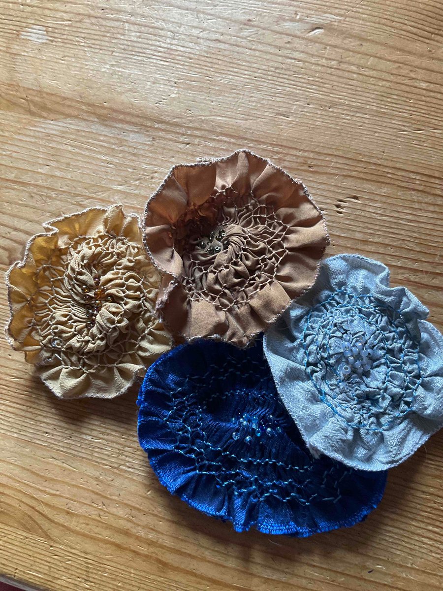 Hand Smocked and Beaded Silk Flower Hair Clip Very well made.
