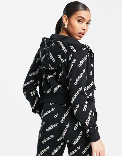 adidas Originals Logomania repeat logo zip hoodie in black Very well made.