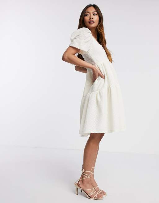 Mango volume sleeve tiered smock dress in cream Very well made.