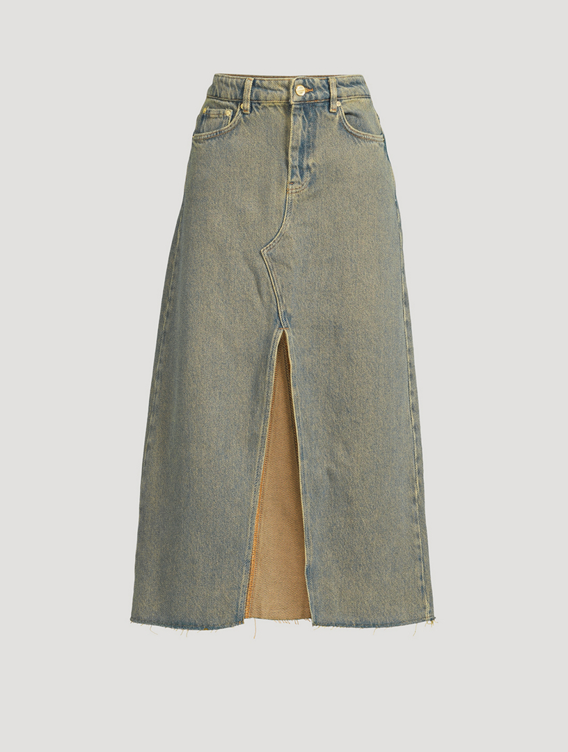 GANNI Heavy Washed Denim Midi Skirt Dark Blue LEO BOUTIQUE Very well made.