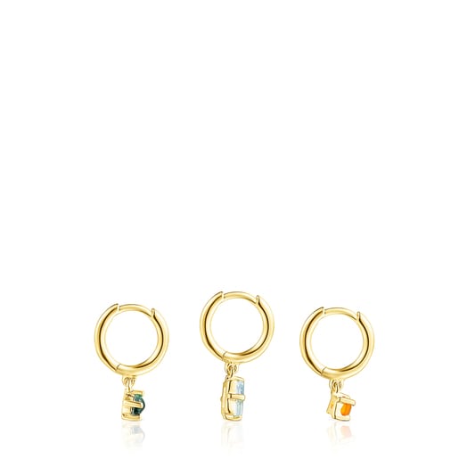 Pack de Pendientes con ba o de oro 18 kt sobre plata y gemas TOUS Good Vibes Very well made.
