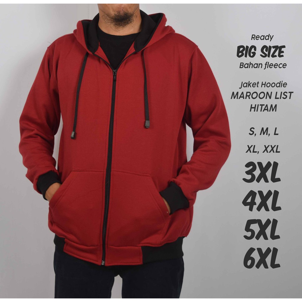 Jual Jaket Hoodie Maroon List Hitam Jumbo Big Size S M L XL Very well made.