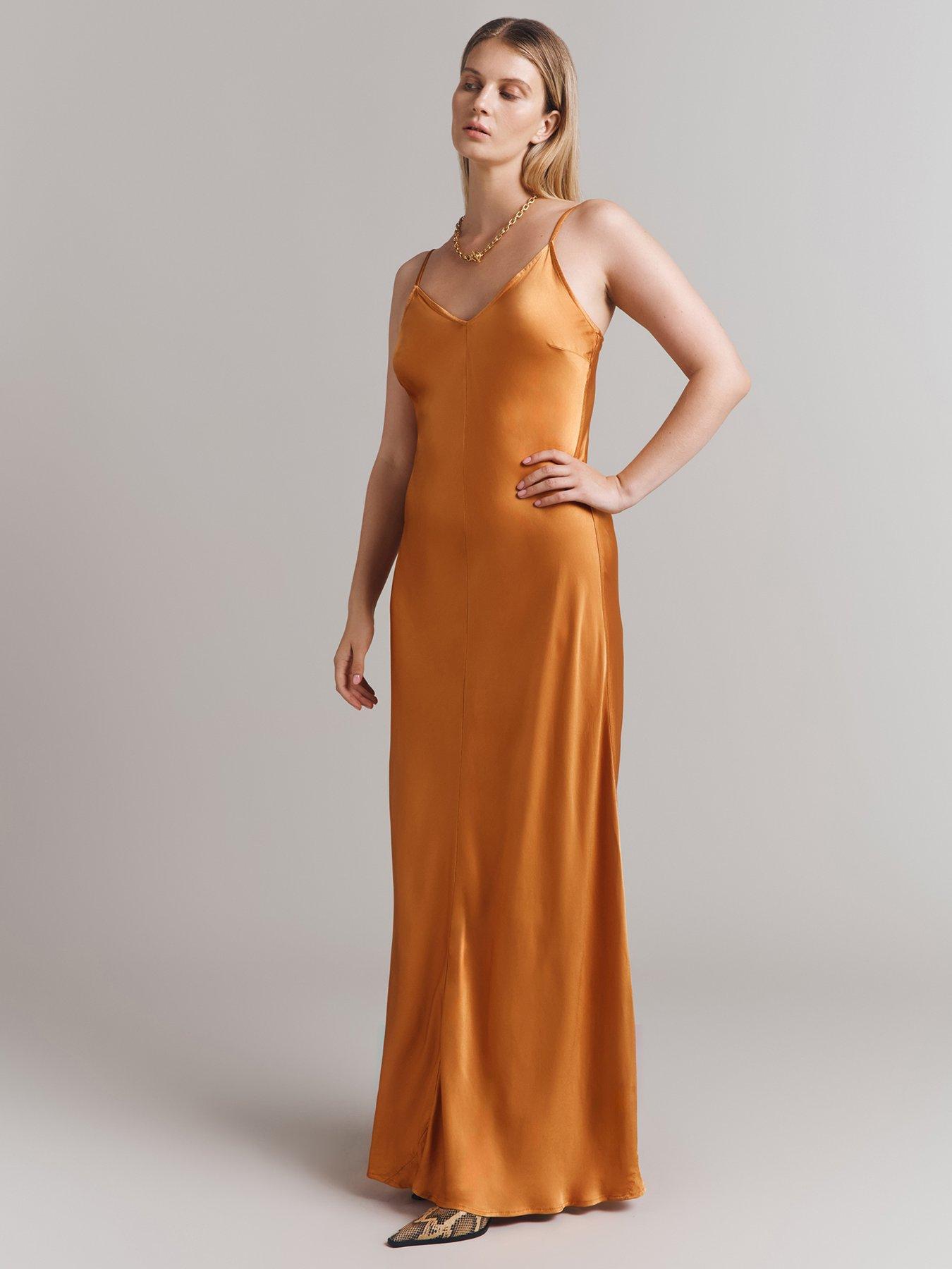 Ghost Stella Maxi Slip Cowl Neck Dress Orange myonewedding Very well made.
