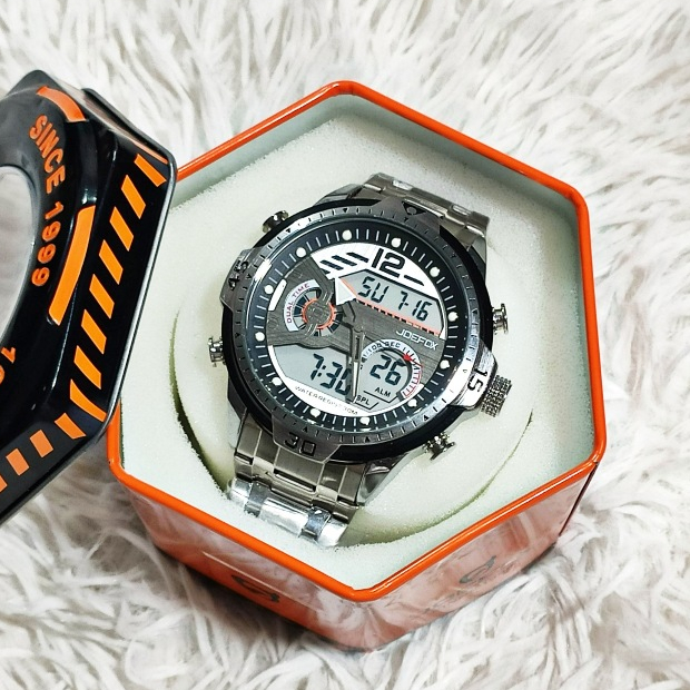 Joefox Men s Multi functional Dual Time LED Digital Sport Wrist Watch Sanda Resist 22 Meter W.R Silver Best E Commerce site in Rajshahi Padmazon Online Shopping in Rajshahi Very well made.