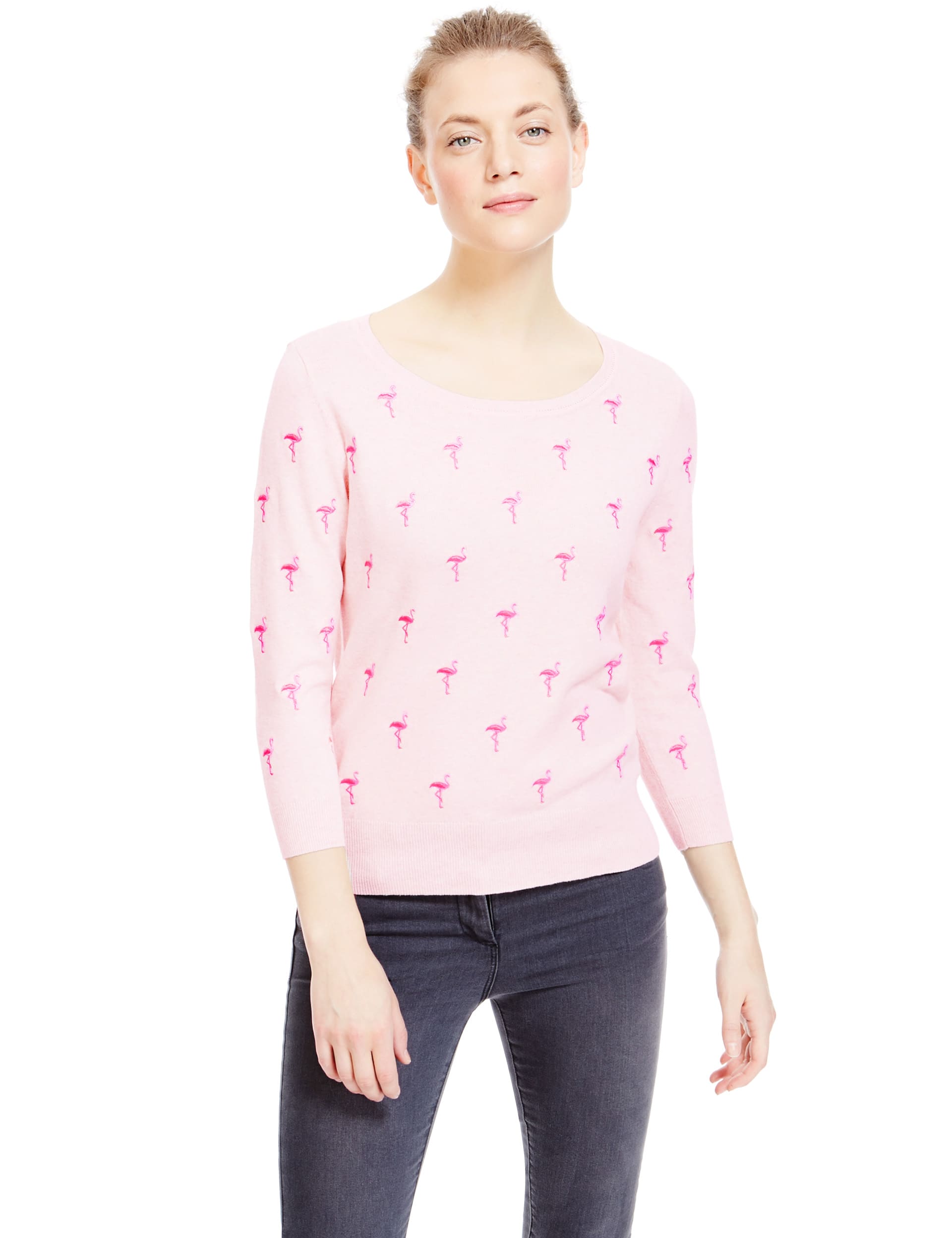 Shop Fur Textured Round Neck Flamingo Print Jumper with Long Sleeves Online Max UAE Very well made.