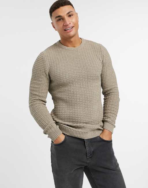 ASOS DESIGN muscle fit waffle knit jumper in oatmeal Very well made.