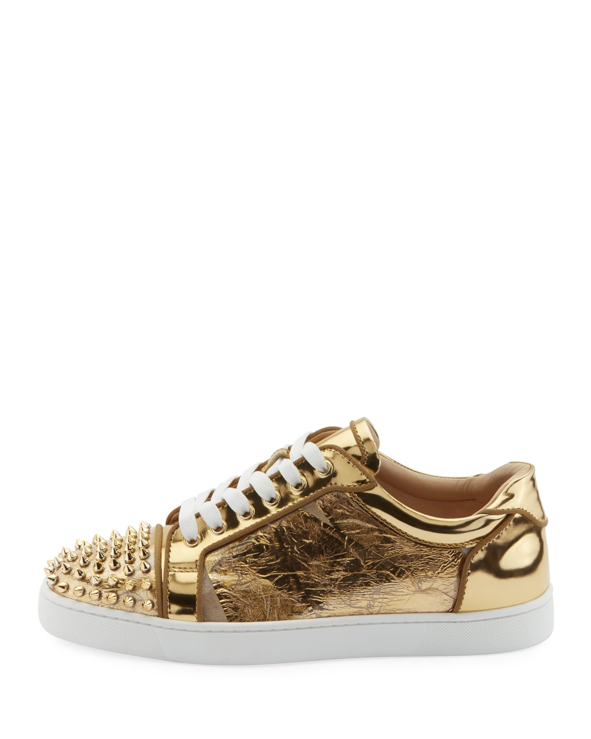 Christian Louboutin Gold PVC and Leather Spiked Orlato Low Top Sneakers 38.5 Very well made.