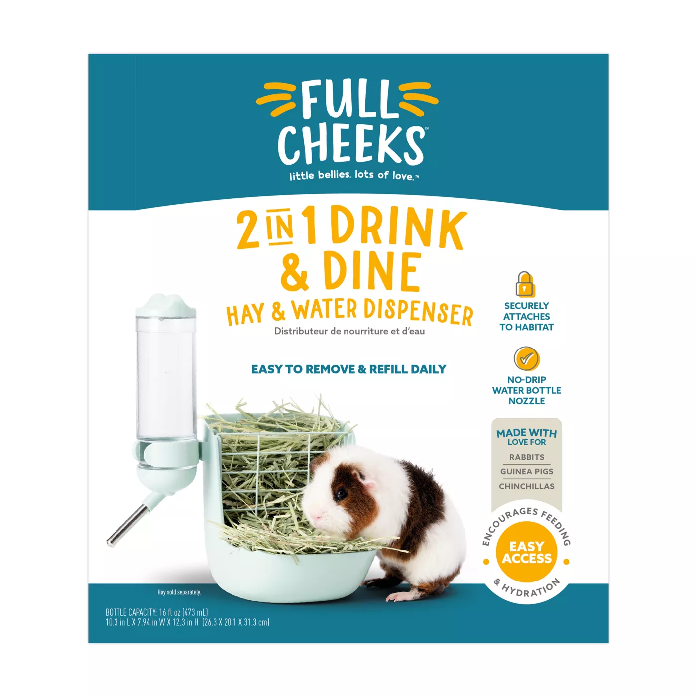 Full Cheeks Small Pet 2 in 1 Drink Dine Hay Water Dispenser Very well made.