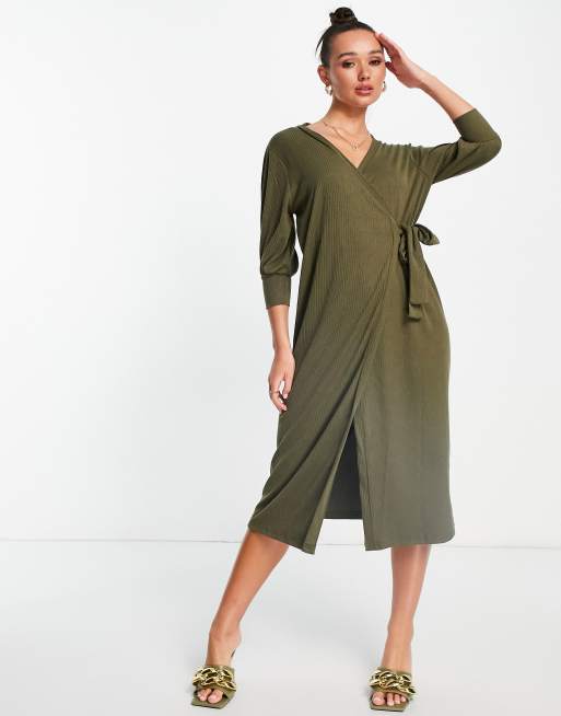 Little Mistress midi wrap dress in khaki Very well made.