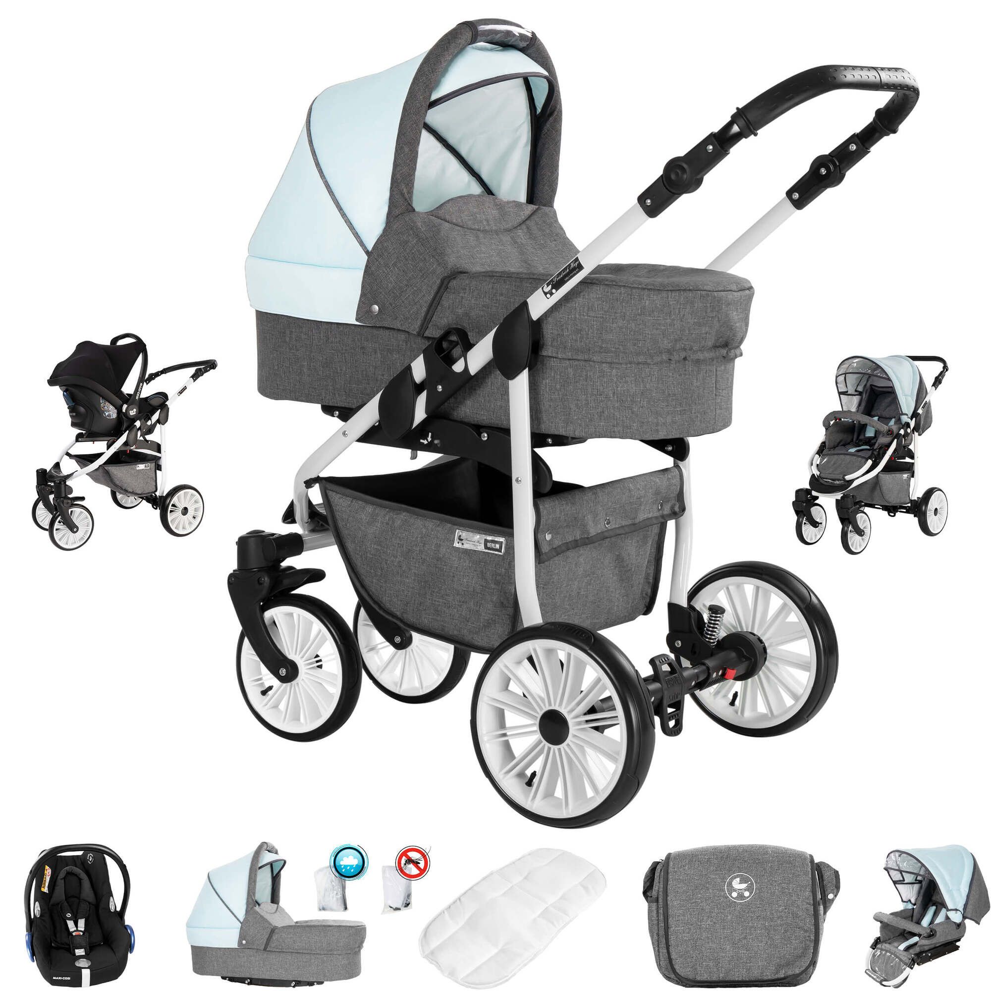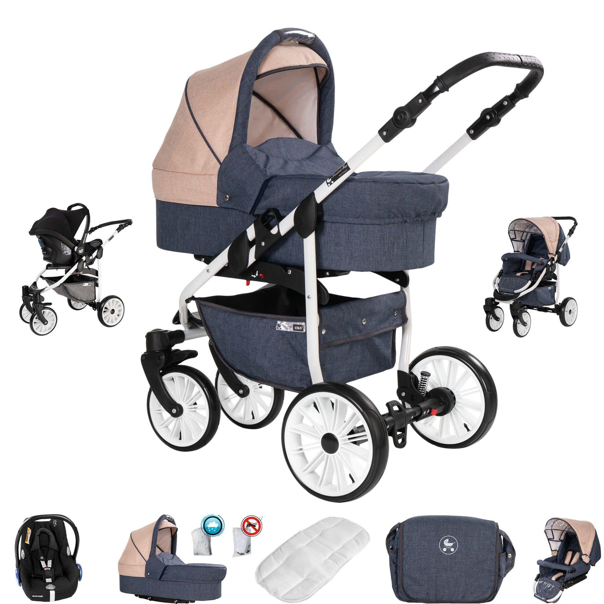 Friedrich Hugo Berlin 3 in 1 Kinderwagen mit Original Maxi Cosi Luft Dark Blue and Beige Day 1 St Shop Apotheke Very well made.