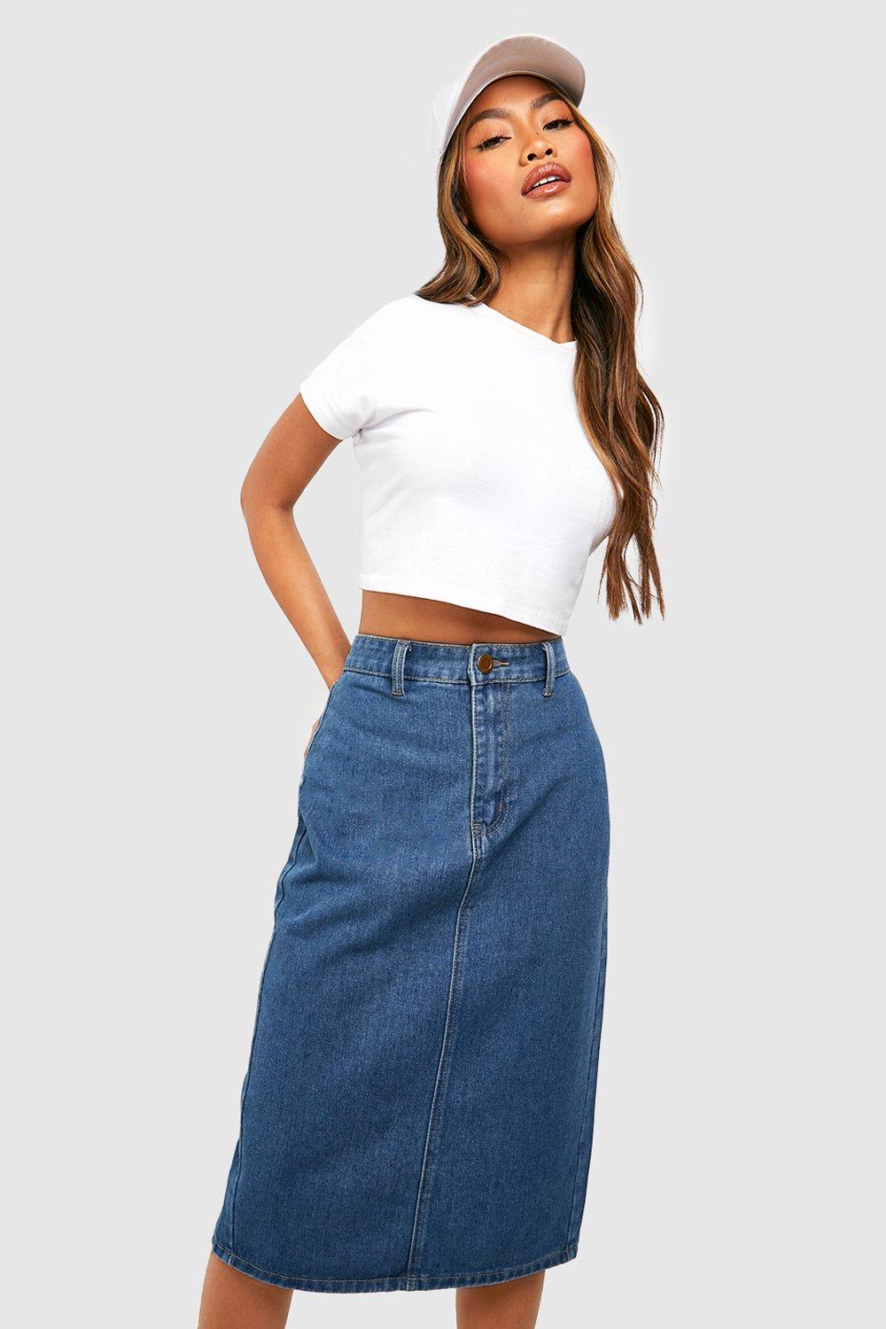 High Waisted Denim Midi Skirt Very well made.