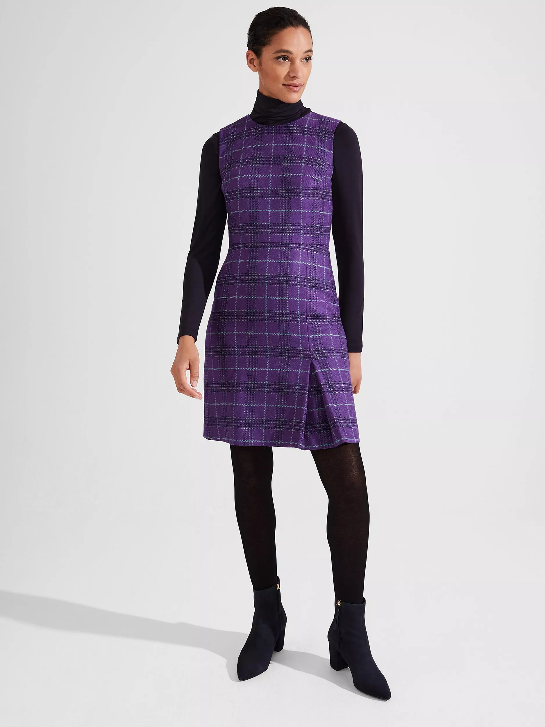 Hobbs Avery Check Wool Mini Sheath Dress Purple Multi Very well made.