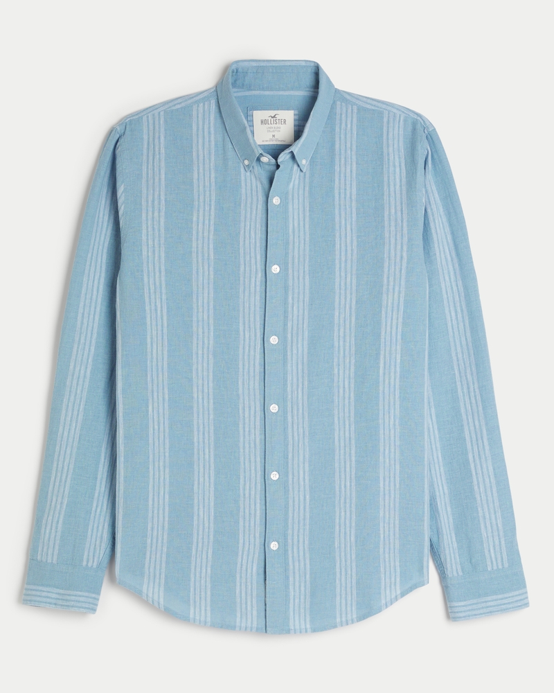 Men s Long Sleeve Linen Blend Button Through Shirt Men s Sale HollisterCo Very well made.