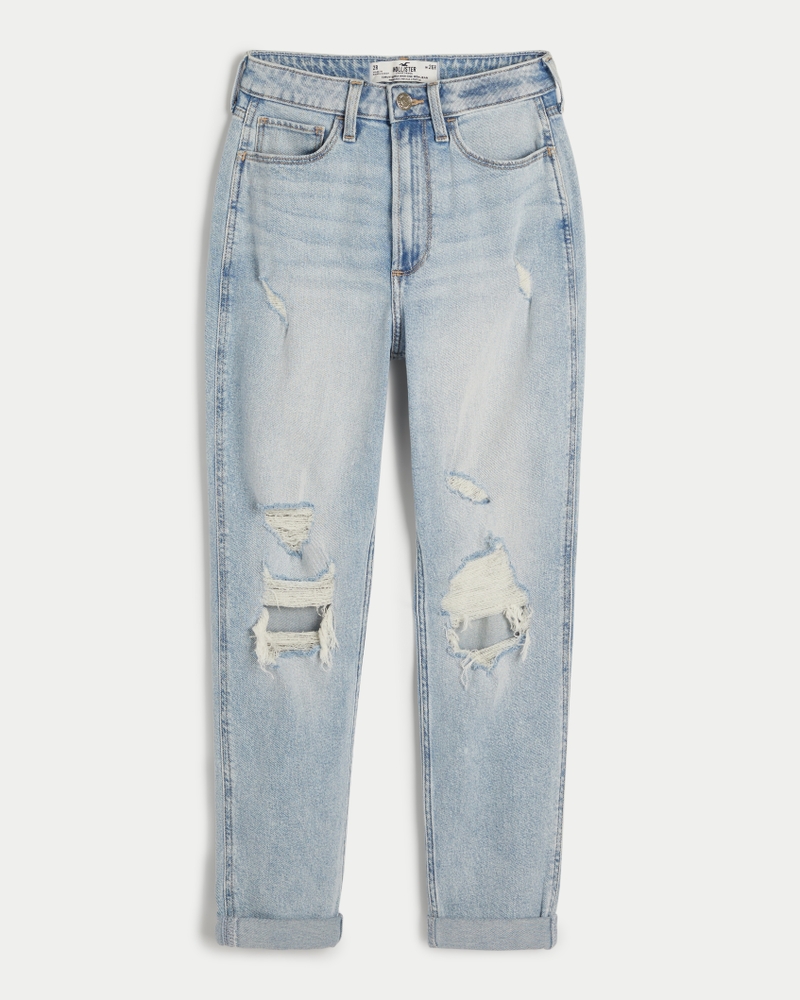 Women s Curvy Ultra High Rise Ripped Light Wash Mom Jeans in Light Ripped Wash Size 0 S 1 S 25W from Hollister Very well made.