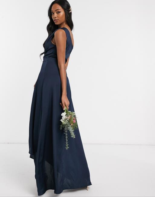TFNC Lange jurk voor bruidsmeisjes met een blote schouder in marineblauw Very well made.