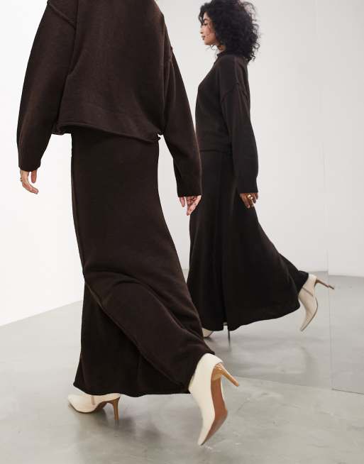 ASOS EDITION Gebreide A lijn maxi rok in bruin Very well made.