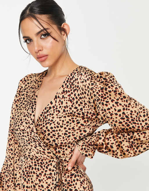 AX Paris Midi omslagjurk met lange mouwen en dierenprint Very well made.