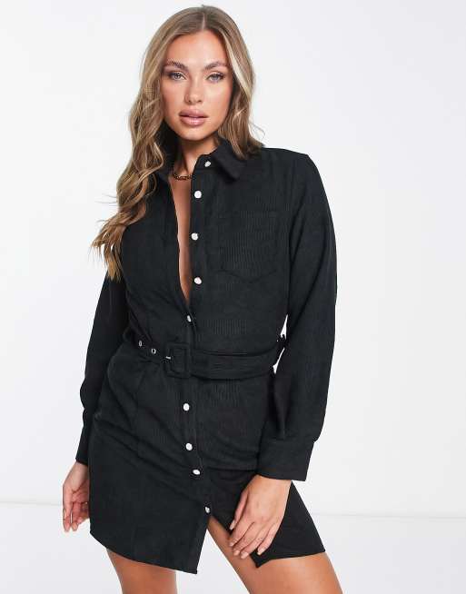 Parisian Mini jurk van corduroy met riem in zwart ASOS Very well made.