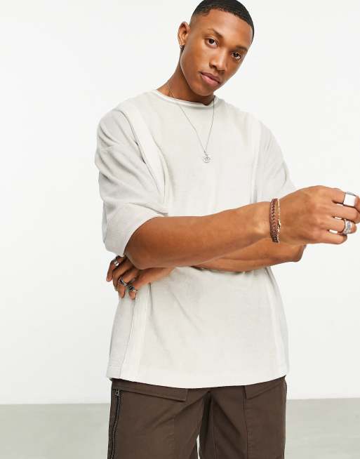 ASOS DESIGN Oversized T shirt van badstof in beige met kleurvlakken Very well made.