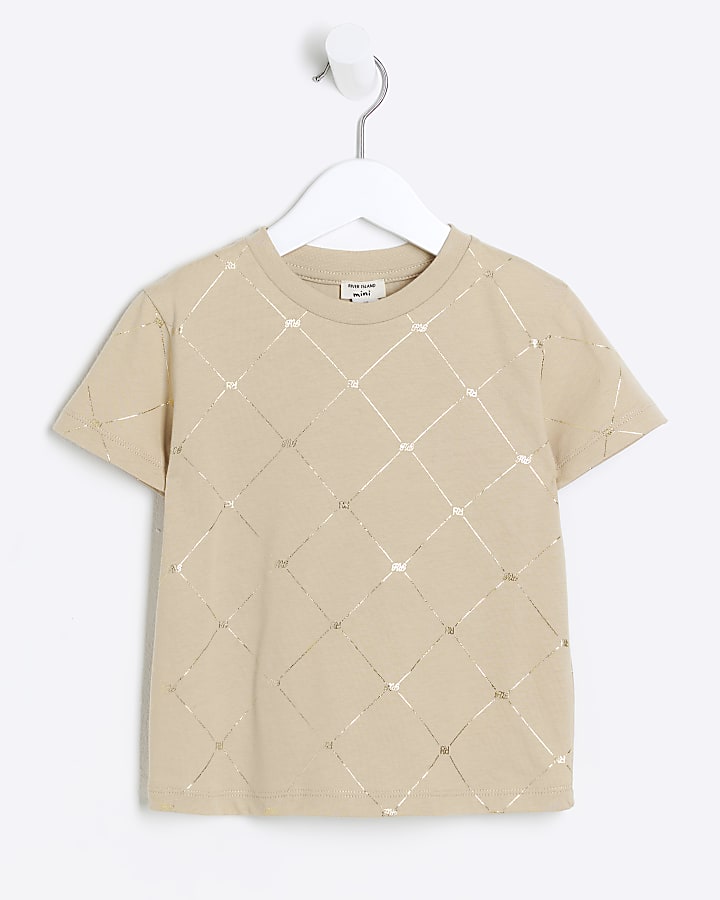 Mini boys beige foil monogram t shirt Very well made.