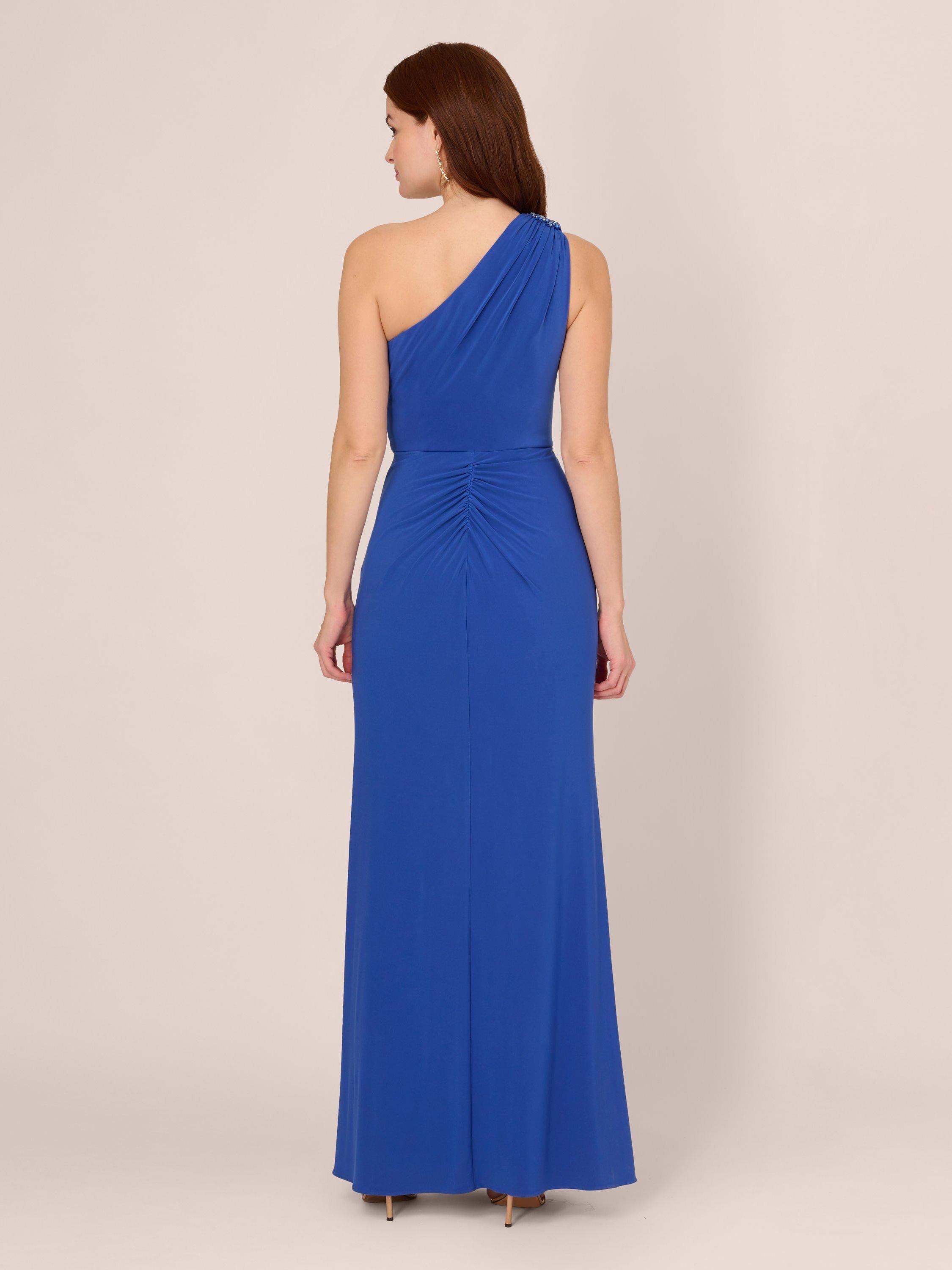 Adrianna Papell One Shoulder Embellished Jersey Maxi Dress Brilliant Sapphire Very well made.
