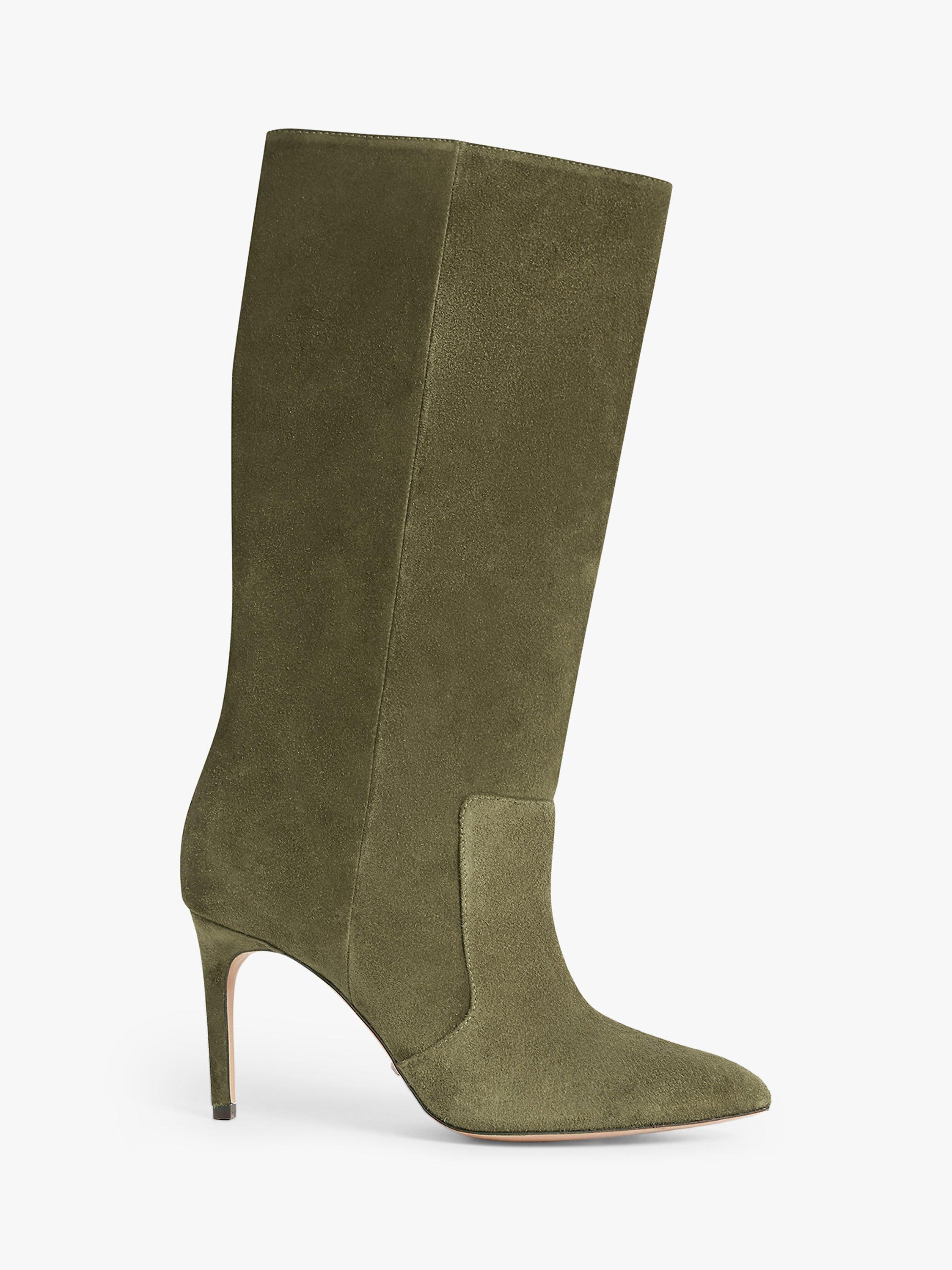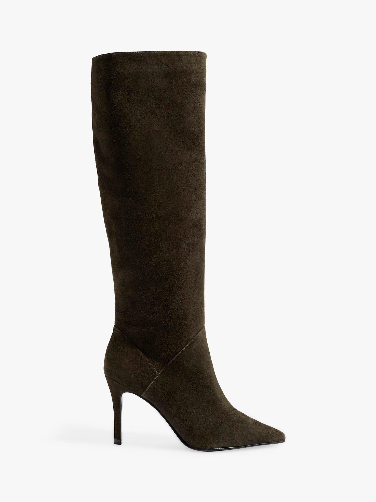 Karen Millen Stiletto Heel Knee High Boots Olive Leather Very well made.