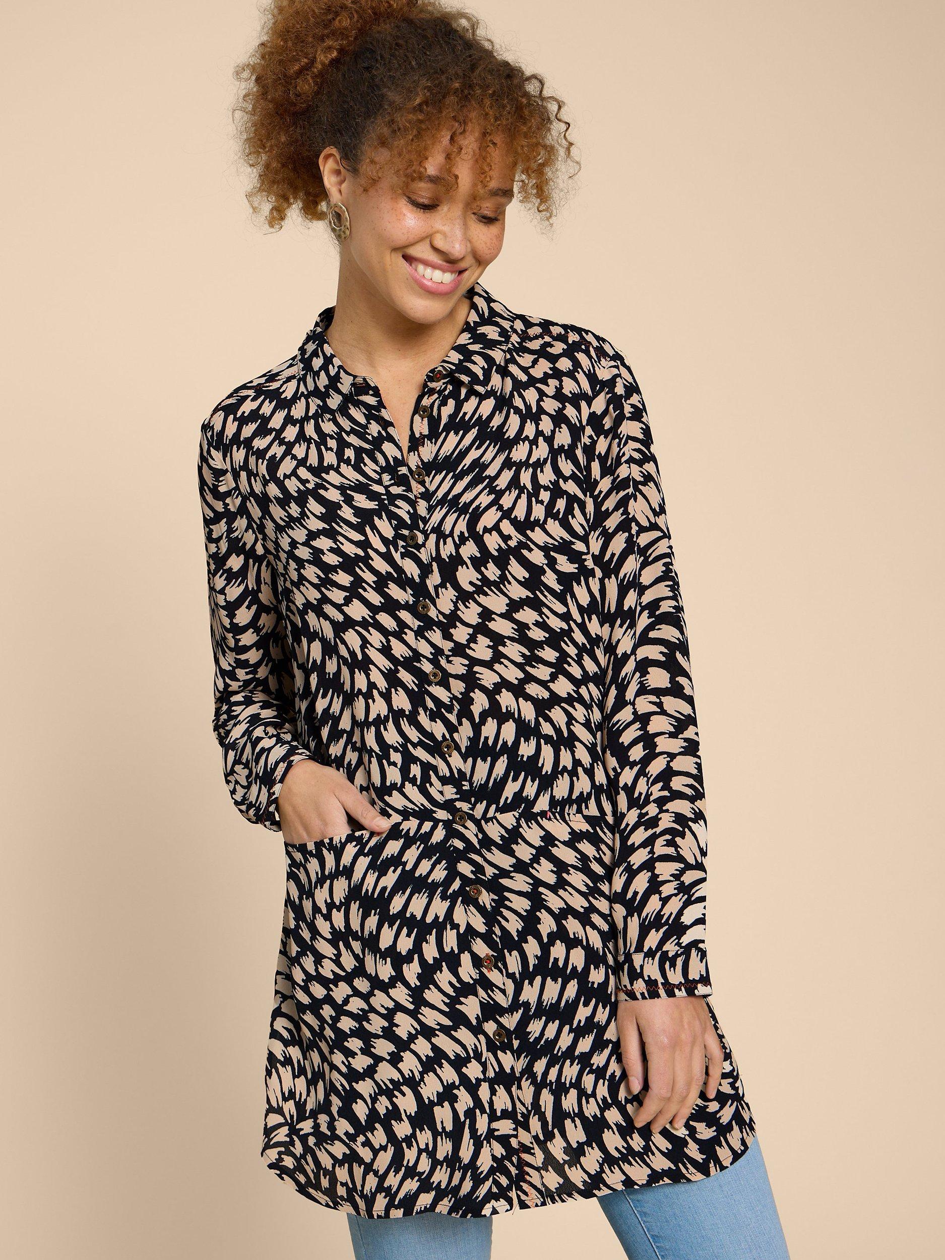 White Stuff Danika Abstract Print Tunic Top Black Multi Very well made.