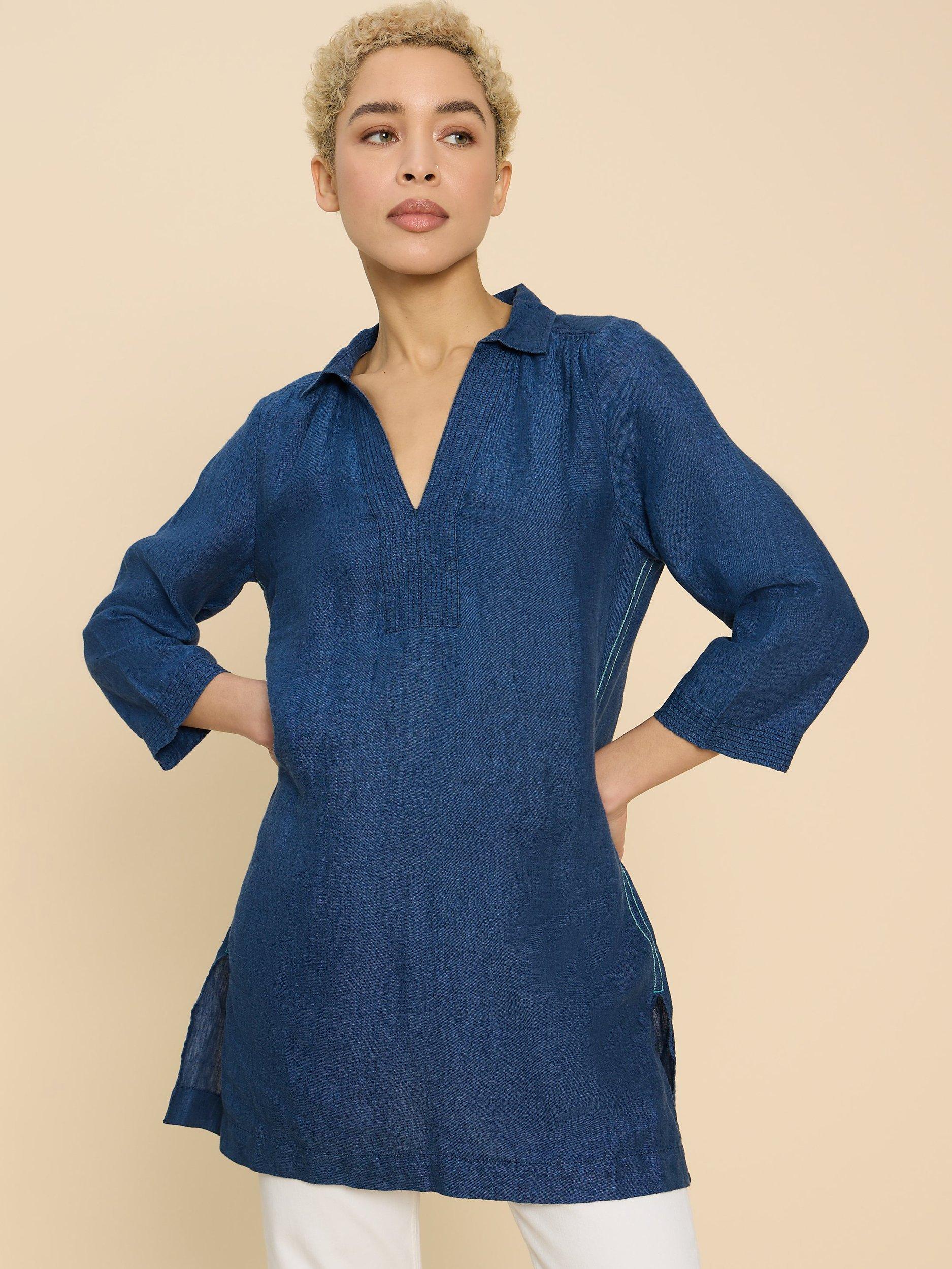 White Stuff Blaire Linen Tunic Navy Multi Very well made.