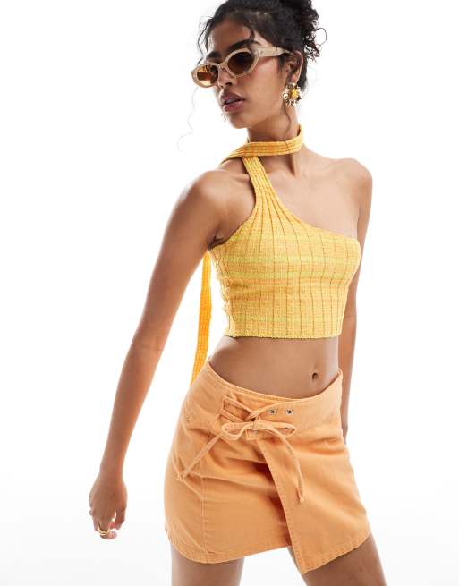 Mango Crop top en maille a dos nu Jaune Very well made.