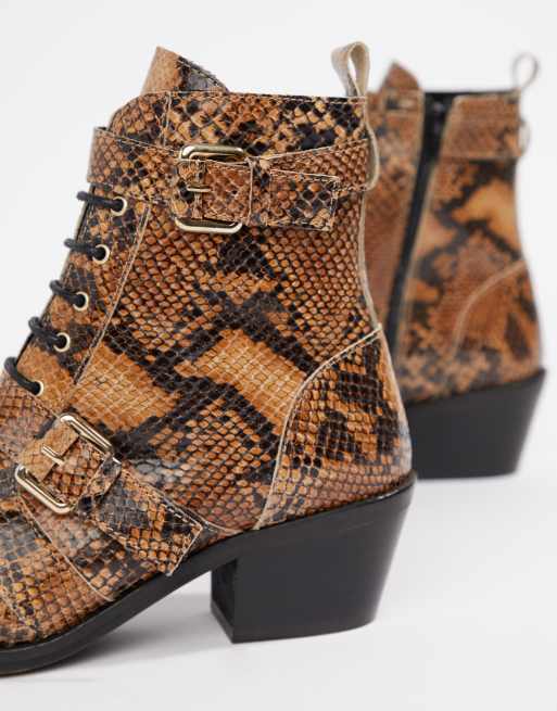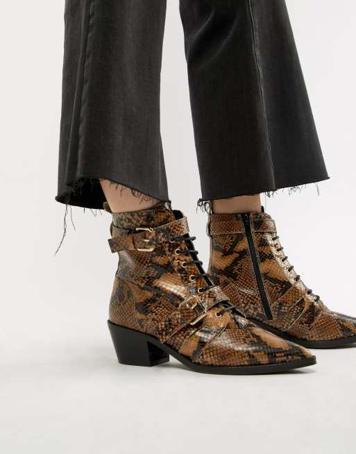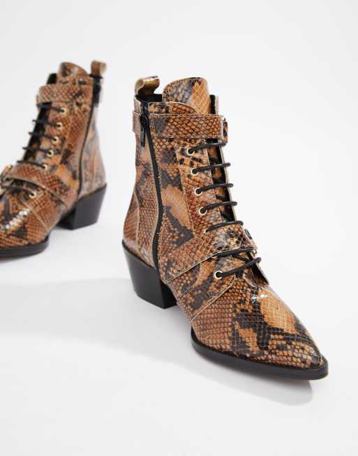Office Ambassador leather snake lace up two buckle ankle boot Very well made.