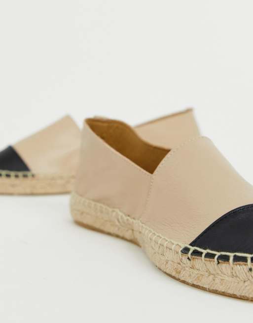 Office Lucky beige leather flat espadrilles with black toe posts Very well made.