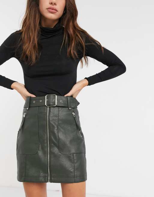 Topshop faux leather biker skirt in olive Very well made.