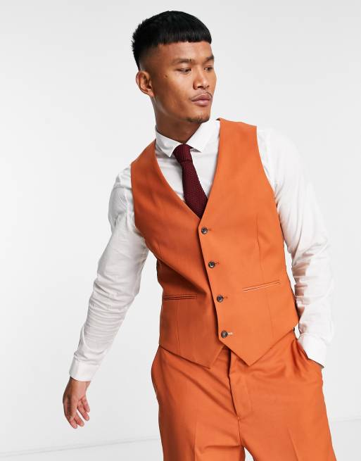 Slim fit orange color ready to wear waistcoat Uomo Attire Very well made.